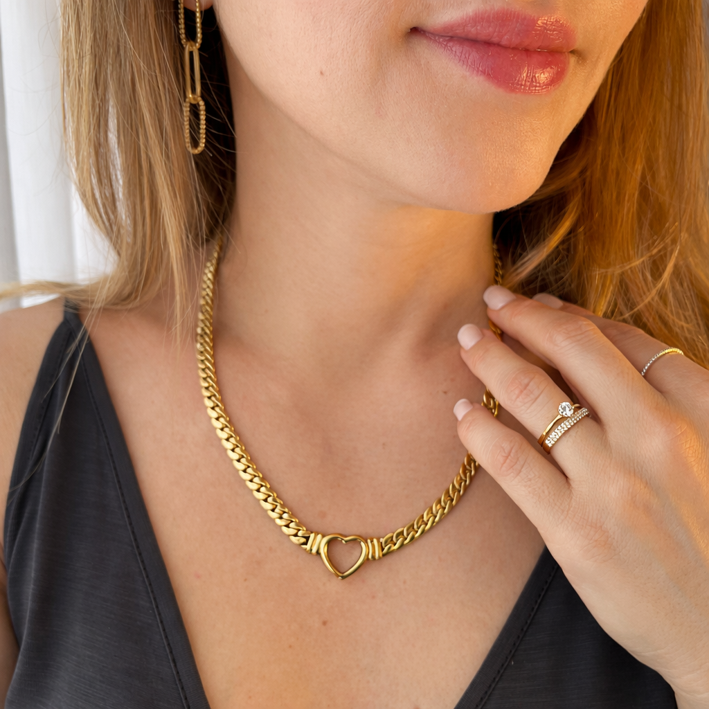 Die Breite Herzhalskette überzeugt mit ihrem markanten, kraftvollen Design. Die breite, hochwertige Edelstahlkette sorgt für einen modernen Look und ist dabei wasserfest, langlebig und alltagstauglich.