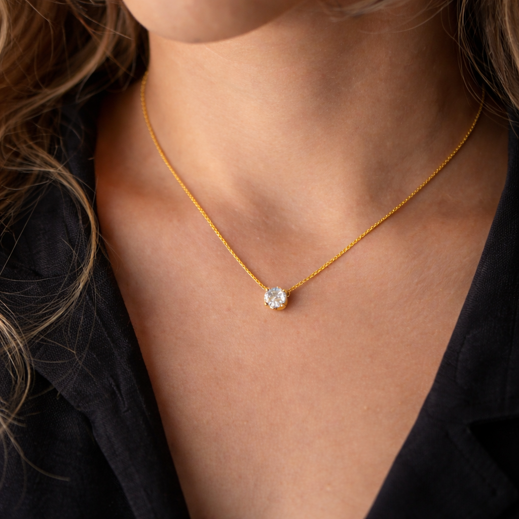 Lichtpunkt Solitär Halskette - 6mm - Sterling Silber