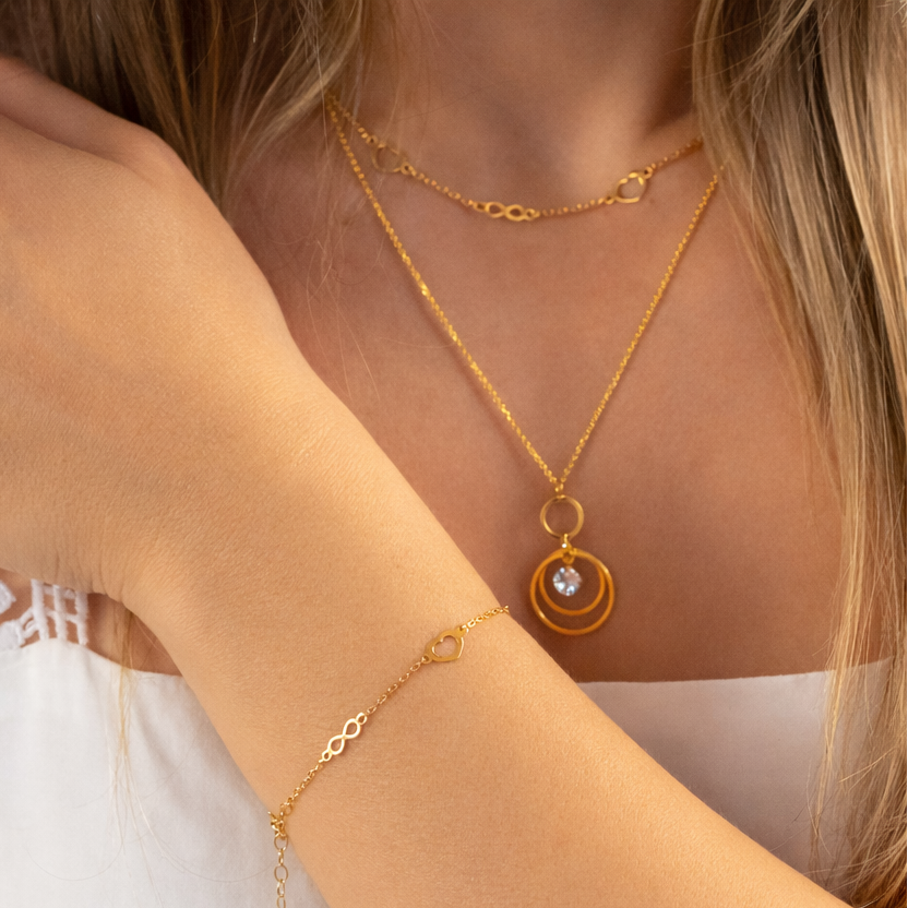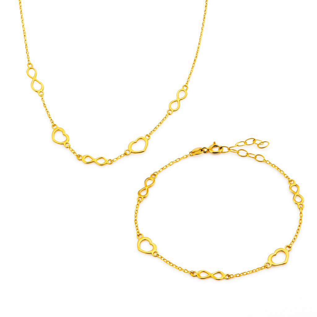 Das Schmuckset Unendliche Verbindung besteht aus einer zarten Halskette und einem passenden Armband – beide veredelt mit dem klassischen Unendlichkeitszeichen aus hochwertigem 925er Sterling Silber.
